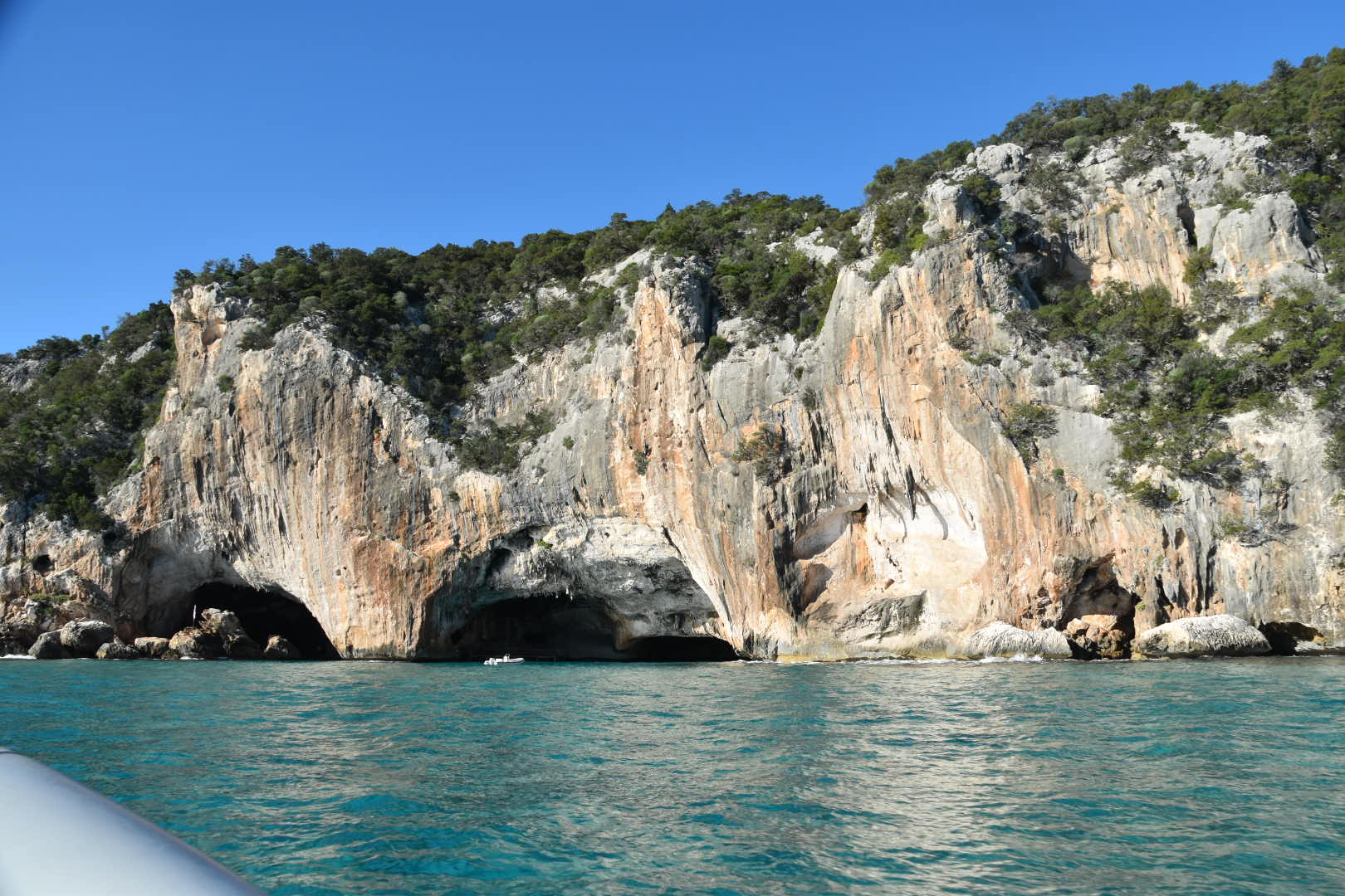 Paulo arrives at about 17.00. And the description is accurate. Paulo turns out to be a gentle soul who takes time on our return journey to show us some very interesting grottos and rock formations. He also pulls into the Grotta del Bue Marino – where Elia had stopped in on our way to Cala Sisine – and tells us about their history in a mixture of Italian and French. Monk seals, also called ‘sea oxen’ by the locals, had lived here until the second world war. A starving population led to the seals being hunted to the point of extinction. Paulo tells that the caves are seventy kilometres long with about one kilometre open to the public. (Note! The Grotta del Bue Marino form part of the Codula di Luna – a karstic tunnel system – in the belly of the Gennargentu. Another place to come and visit in the future.)