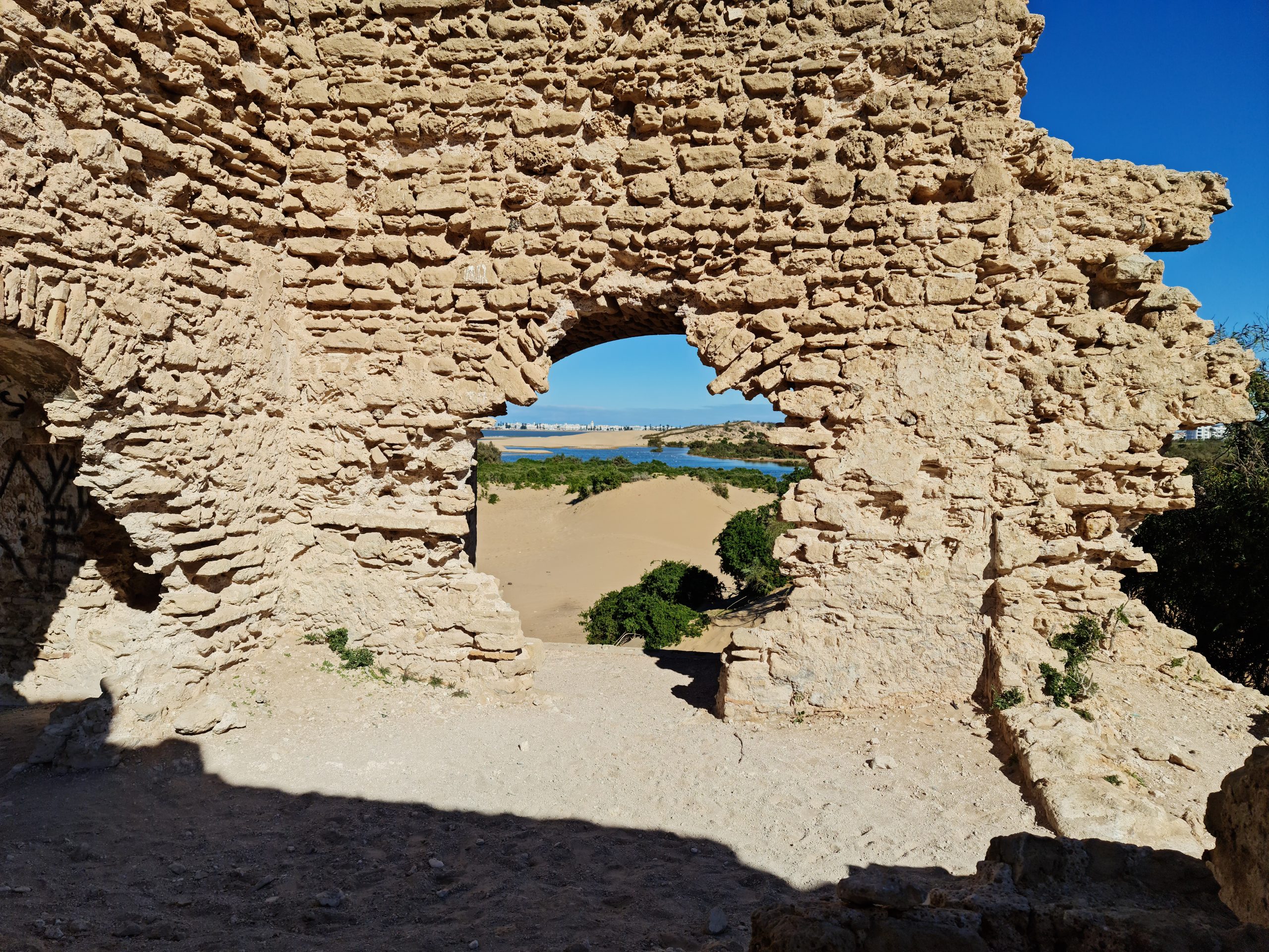 If you walk across the dunes to your left, you’ll see a few shallow pools stretching back and beyond the bridge next to the little village of Diabat. Seagulls love them. Keep walking, keeping to the right of the river and you’ll soon see another ruin on your right. You’ve reached the Dar Sultan.