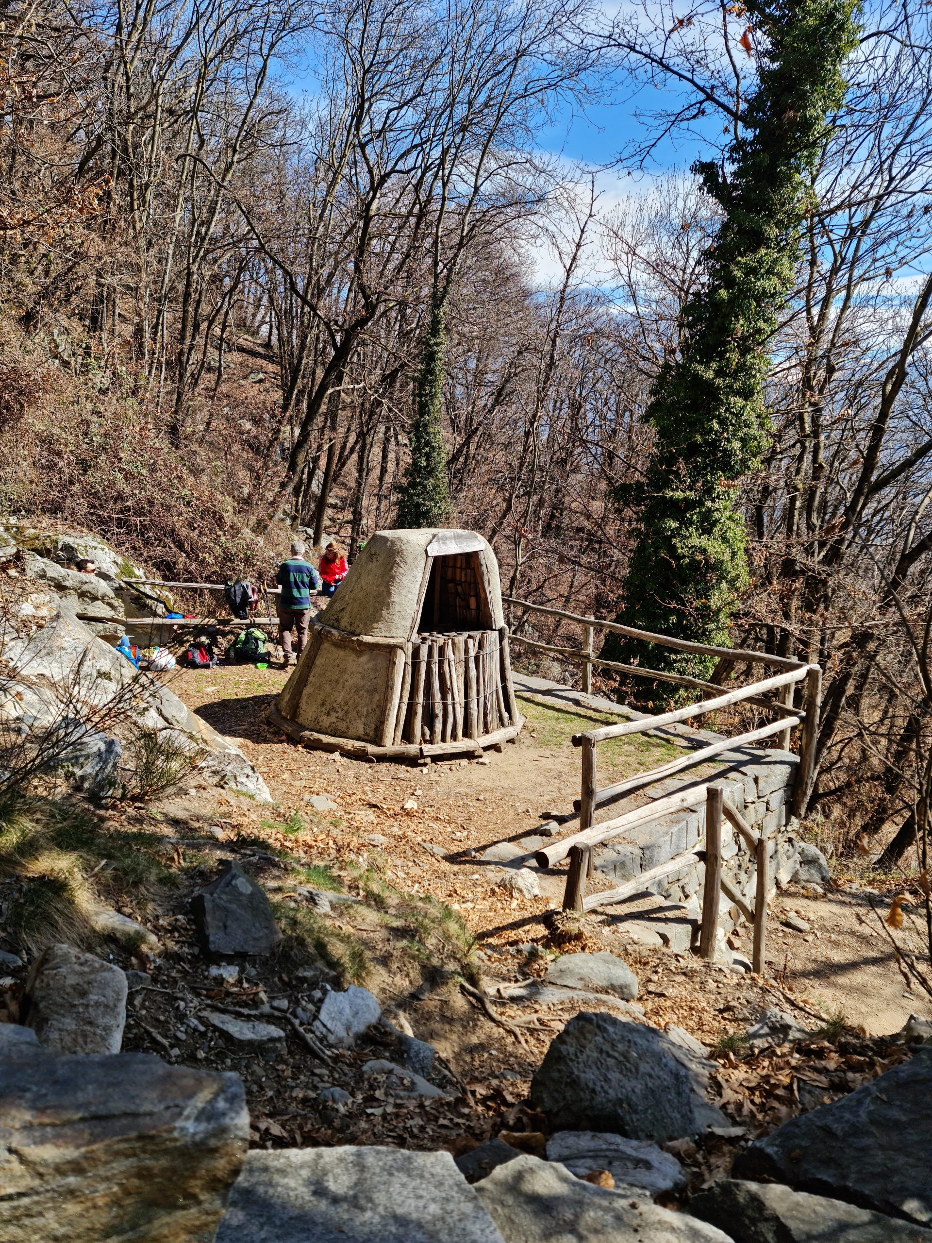 Deciding that it was too busy around the bridge for a lunch stop, we continued on the giro del ponte Tibetano. A little further we come across ‘la carbonaia’ – reconstruction of a traditional charcoal firing-pit.