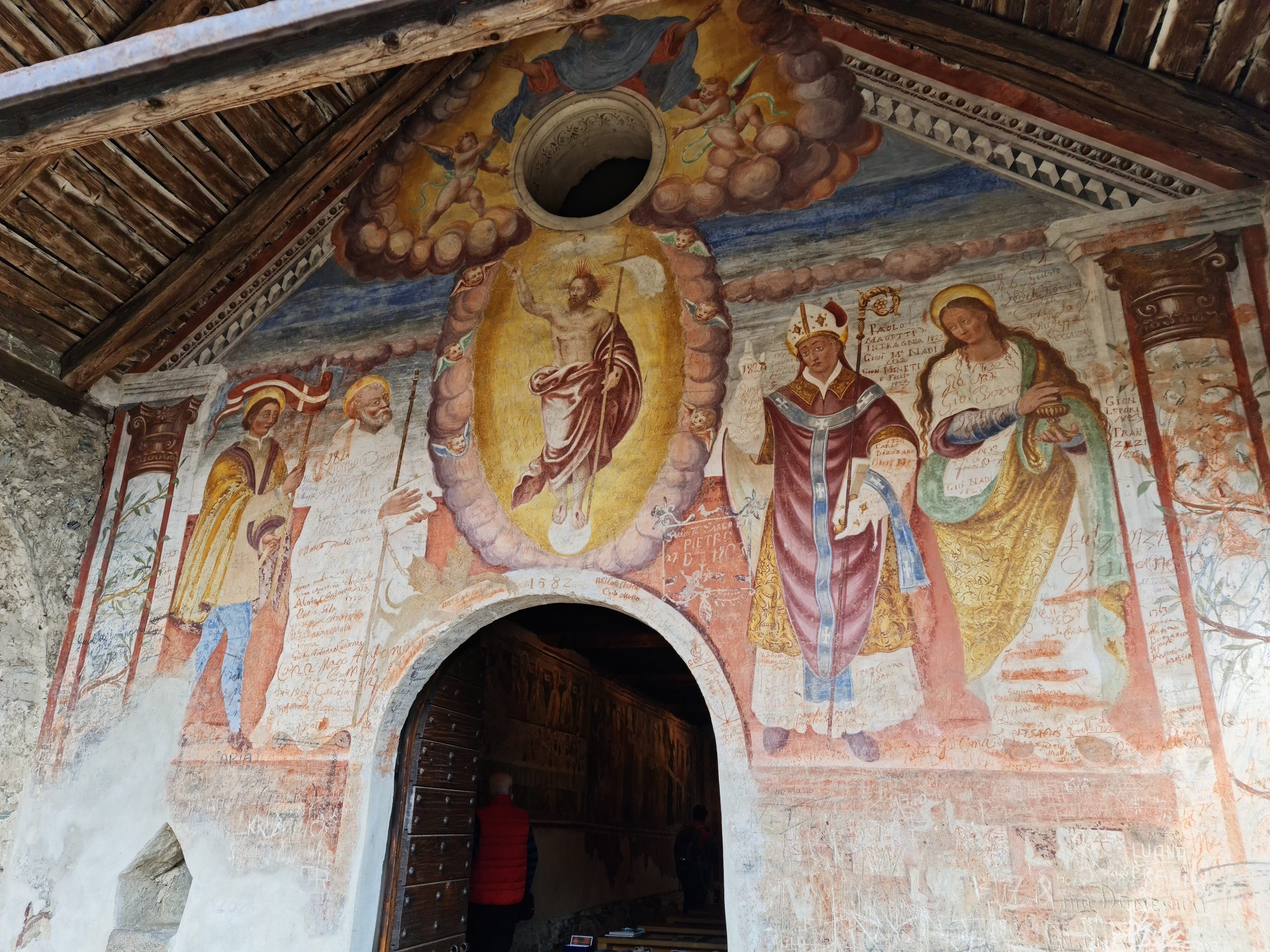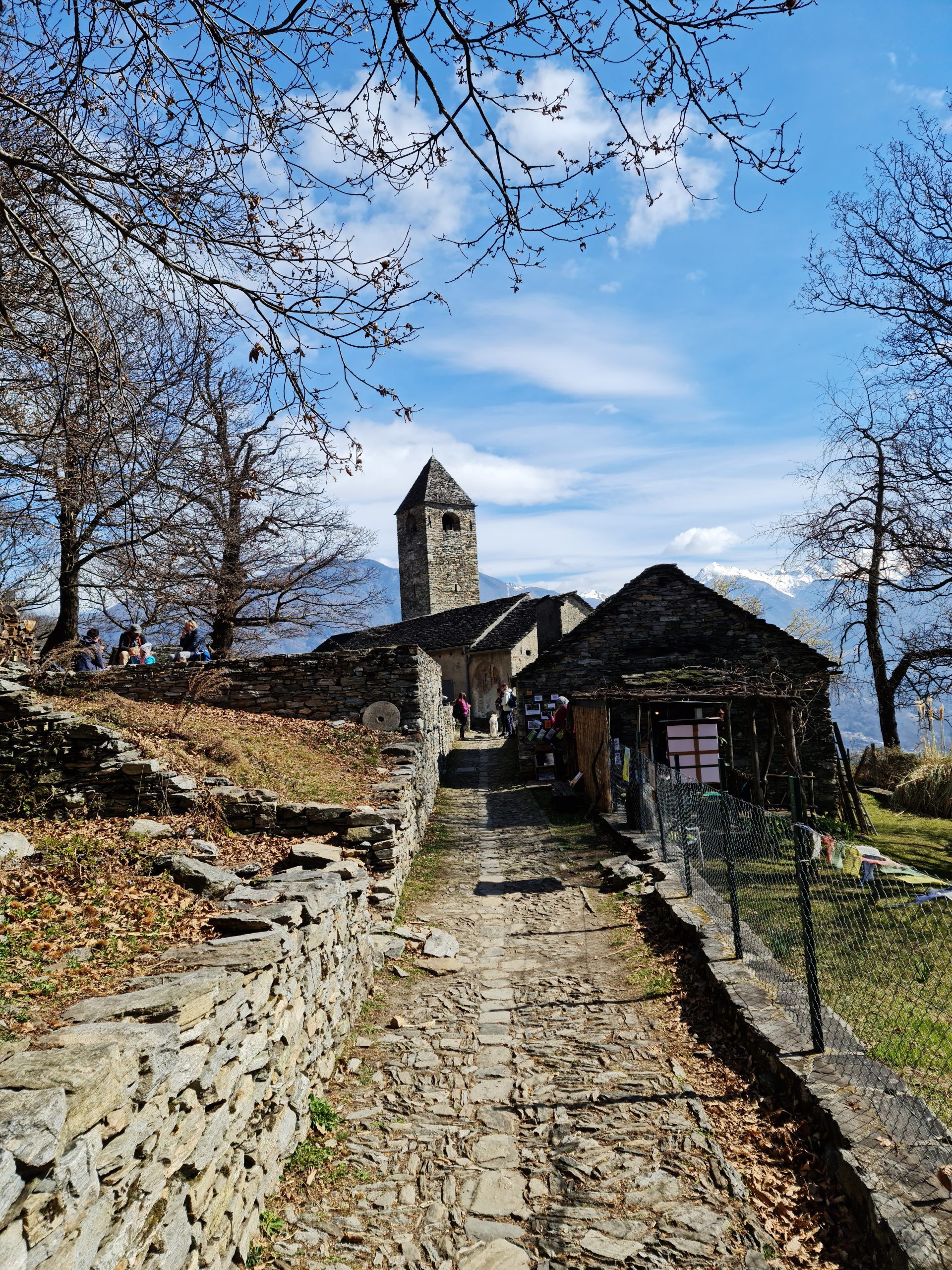 We continued towards Curzútt, stopping at the Romanesque church of San Bernardo. Standing in a clearing in the woods, it was apparently once a part of the hillside-village life. Dating back to the eleventh century, it contains several frescoes dating back to the fourteenth century. Quite a few people were milling around the church entrance, waiting for others to come out, so they can go inside, so we walked past and found ourselves a little spot on the terrace where we brewed a cup of coffee, and made our avocado sandwich with Grana Padano cheese on the side.