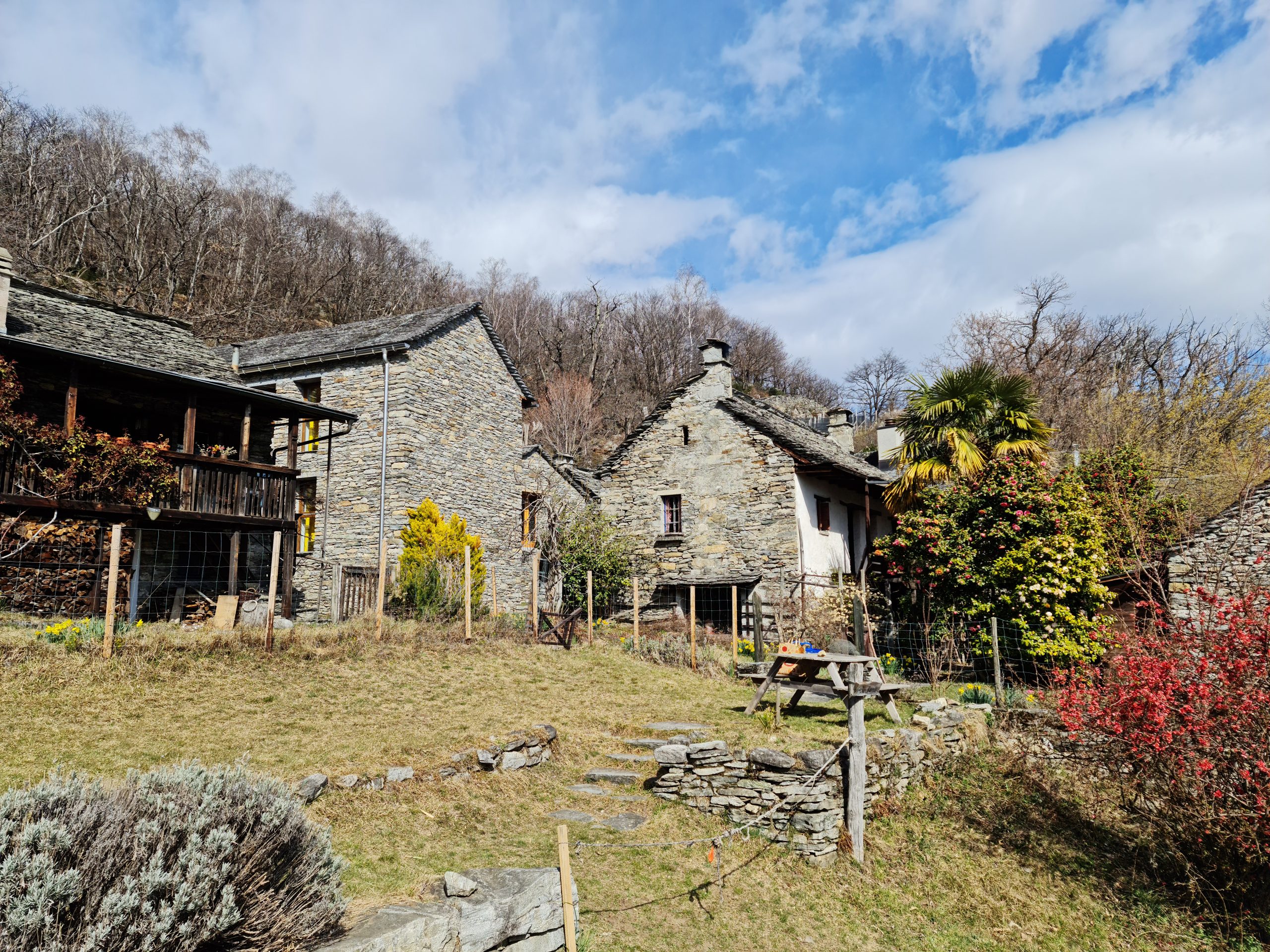 A short way from the church we walked through the picturesque little village of Curzútt. At a junction we took the path leading back to Monte Carasso. Here the signs marking the giro del ponte Tibetano became less clear. And we ended picking a path that was probably not part of the main route… It nevertheless brought us back to the main road through Monte Carasso and the bus stop.
