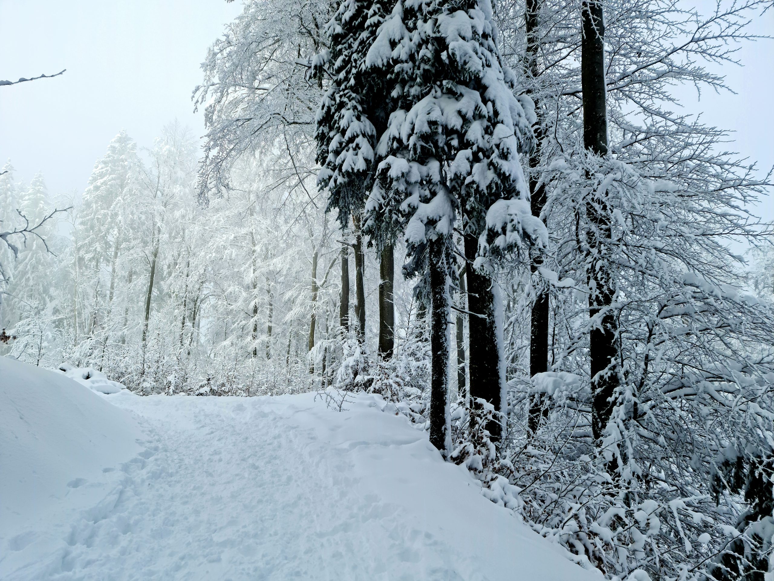 It snowed for nearly two days… There was snow everywhere. Snow covered the trees and the lawn, and we even had some on the balcony. Snow covered the streets and the sidewalks disappeared. Uetliberg, our local mountain, turned into a winter wonderland.