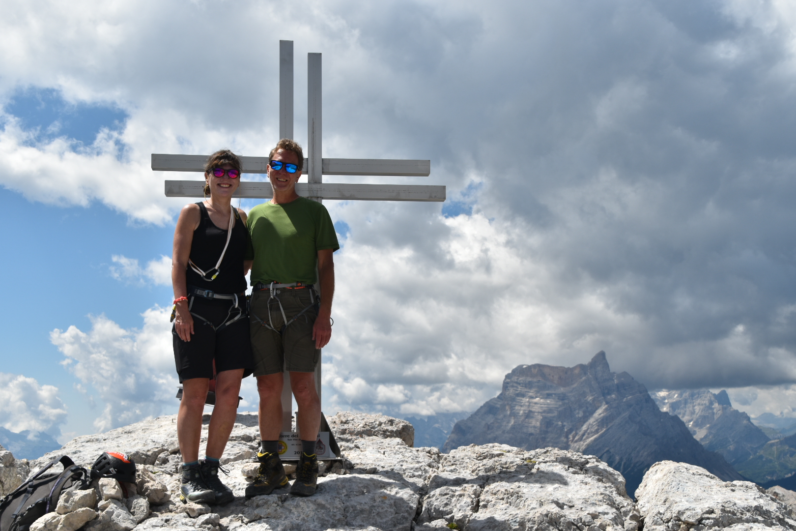 More celebrations follow at rifugio San Marco with Tania being very happy that we’ve finally climbed the tower for another perfect mountain day!