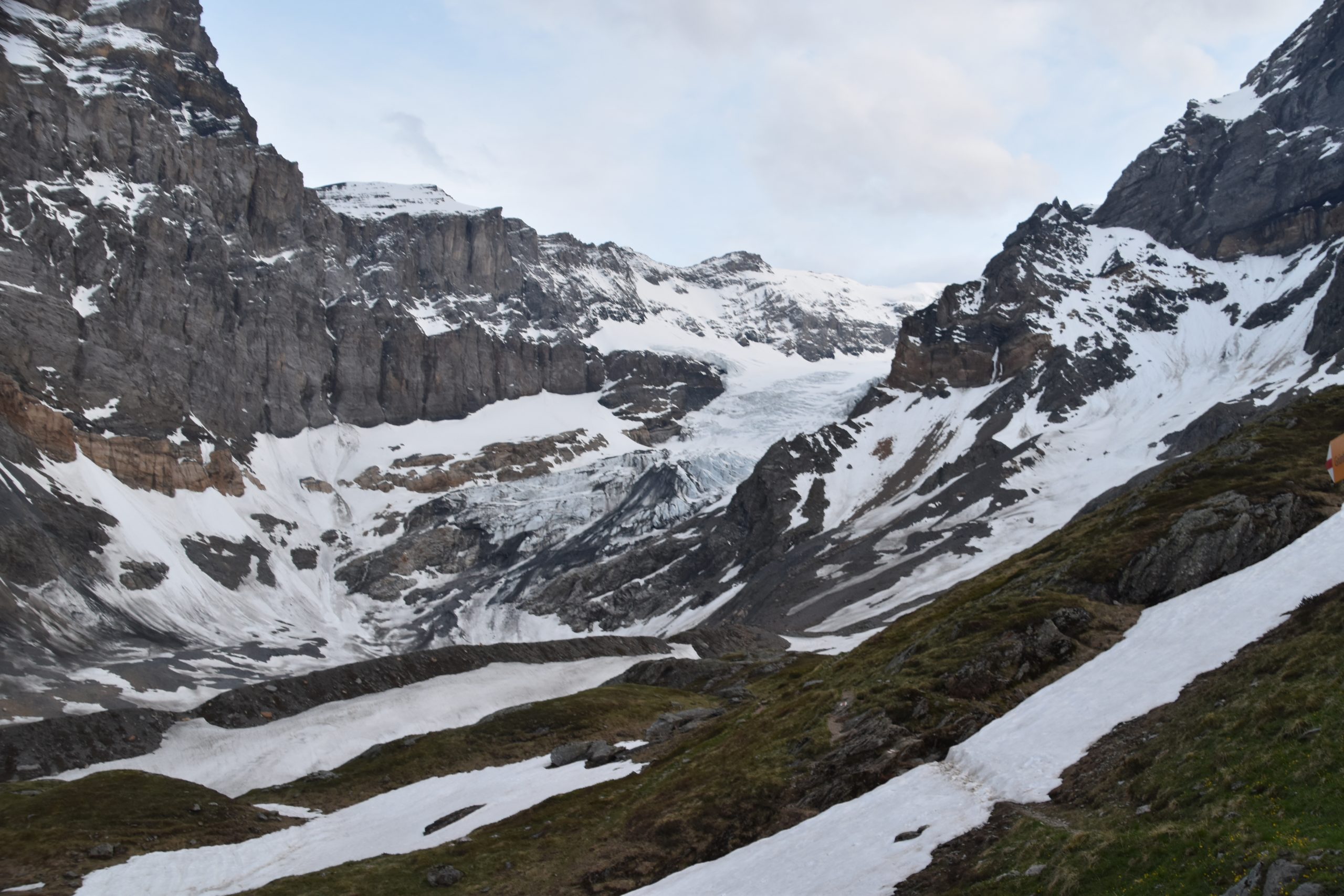Zigzag follows zigzag. We cross a steep snowfield, carefully, in case the snow is unstable. Then we’re back onto the next set of zigzags. To our right is Tödi, covered in snow, the front of its remaining glacier clearly visible between the major buttresses flanking its summit. Finally, as we turn yet another corner, the hut appears about a 100 metres above us. Barbara’s face lights up with the biggest smile she’s had all day! I’m just as happy!