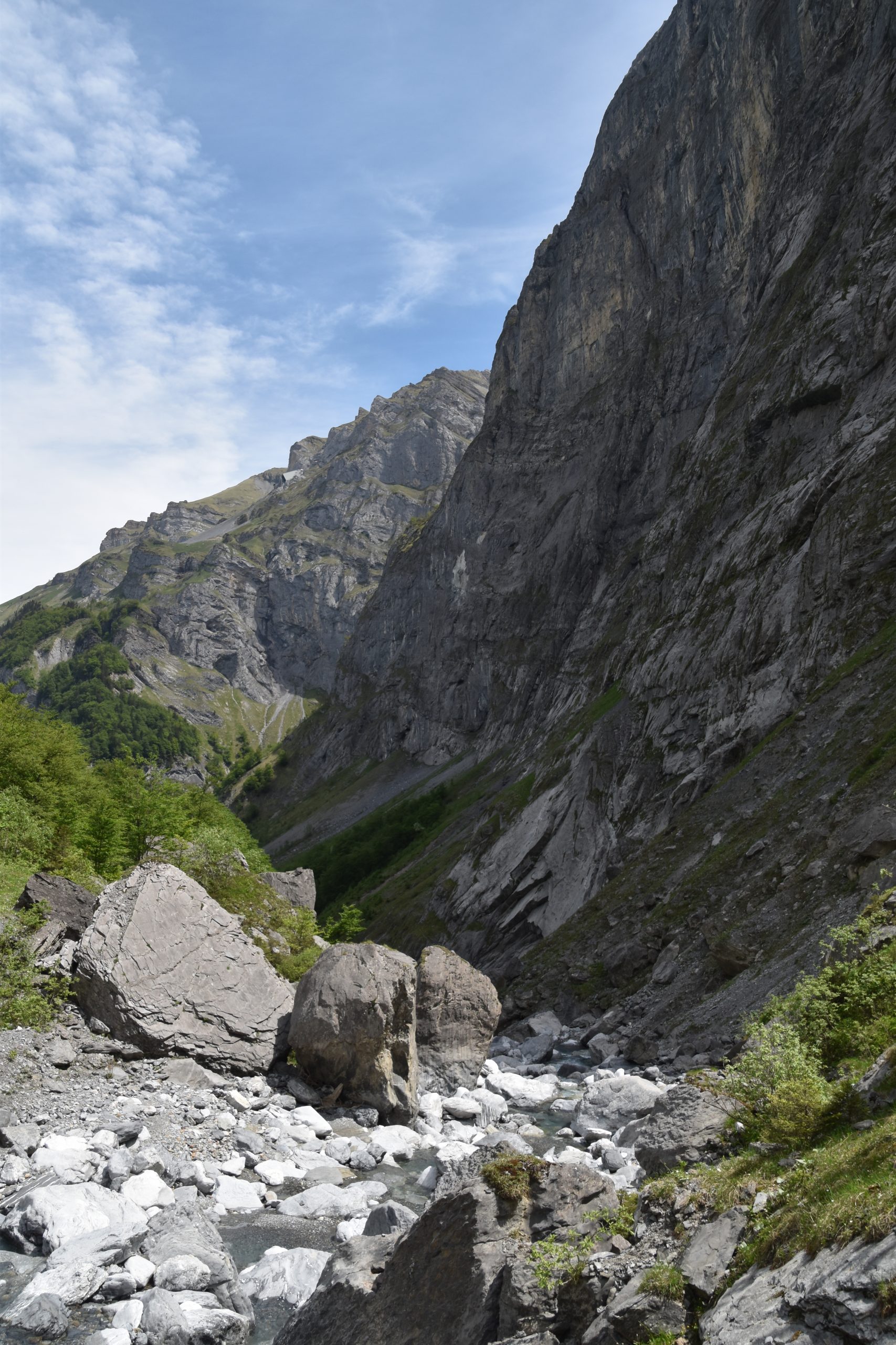 Then we set off again. 500 metres done, another 850+ to go. The scenery changes from forest, to grassland, and then we start entering the alpine region. The towering cliffs above are getting closer and becoming more spectacular as we gain height.