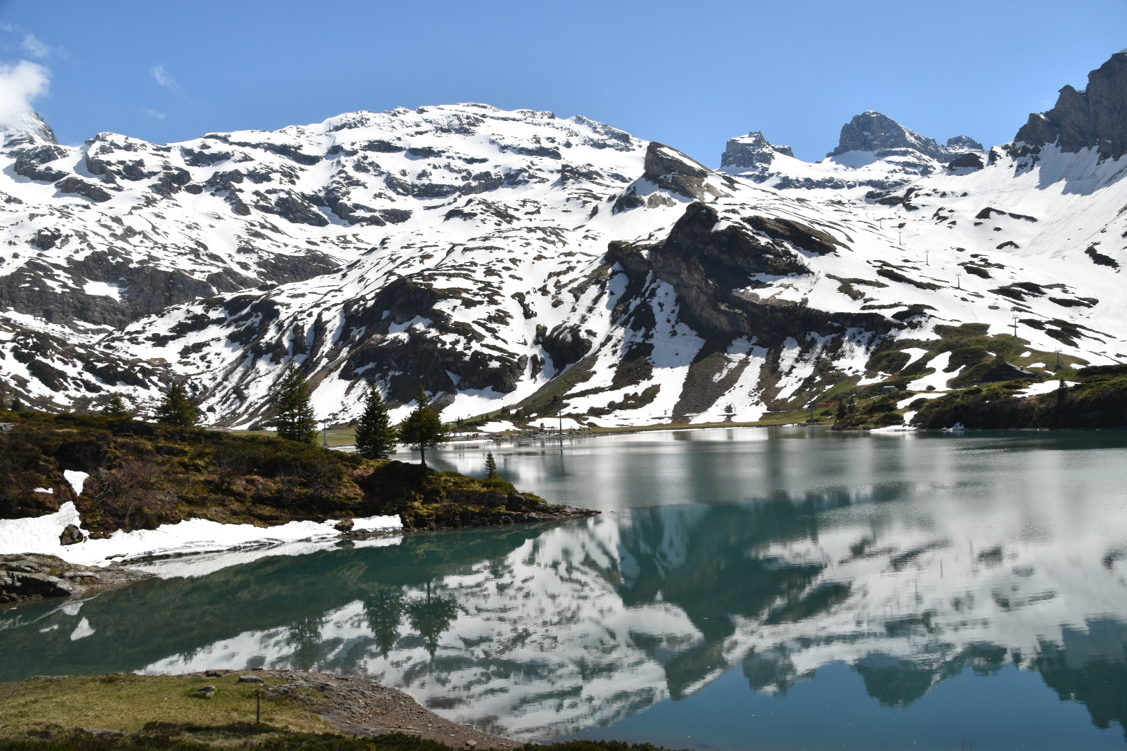 Halfway around the lake we find a comfortable spot looking over the lake towards Mt Titlis. Barbara fires up the stove, while I start preparing our avocado and banana sandwiches. The ducks we saw on the other side of the lake are now directly below us… first just one and then eventually all three, cruising along effortlessly looking for food. Above us, a kite is showing off its aerial skills. Peace.
