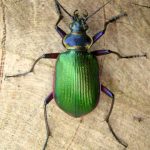 A few bigger ones as well, some with dark black shields, and one particularly beautiful one with a shield that appeared to have metallic stripes alternating between emerald green and rust gold… I found later that they’re called Caterpillar Hunter beetles (picture credit: https://bugguide.net/node/view/648178).