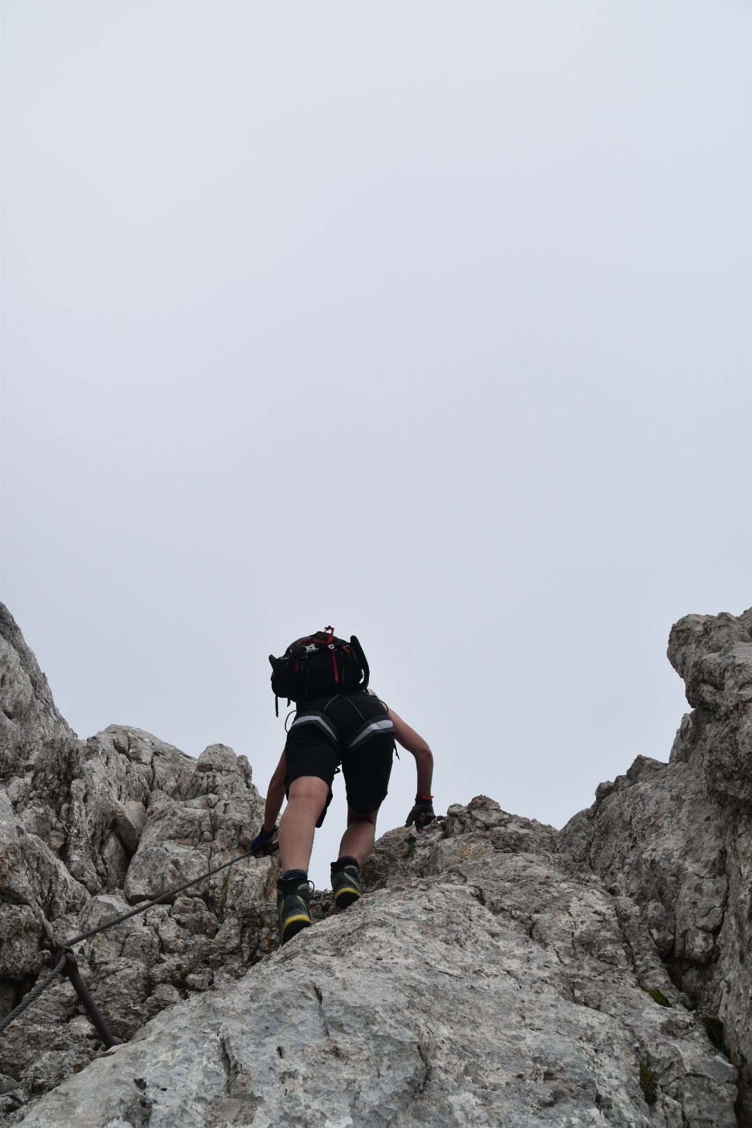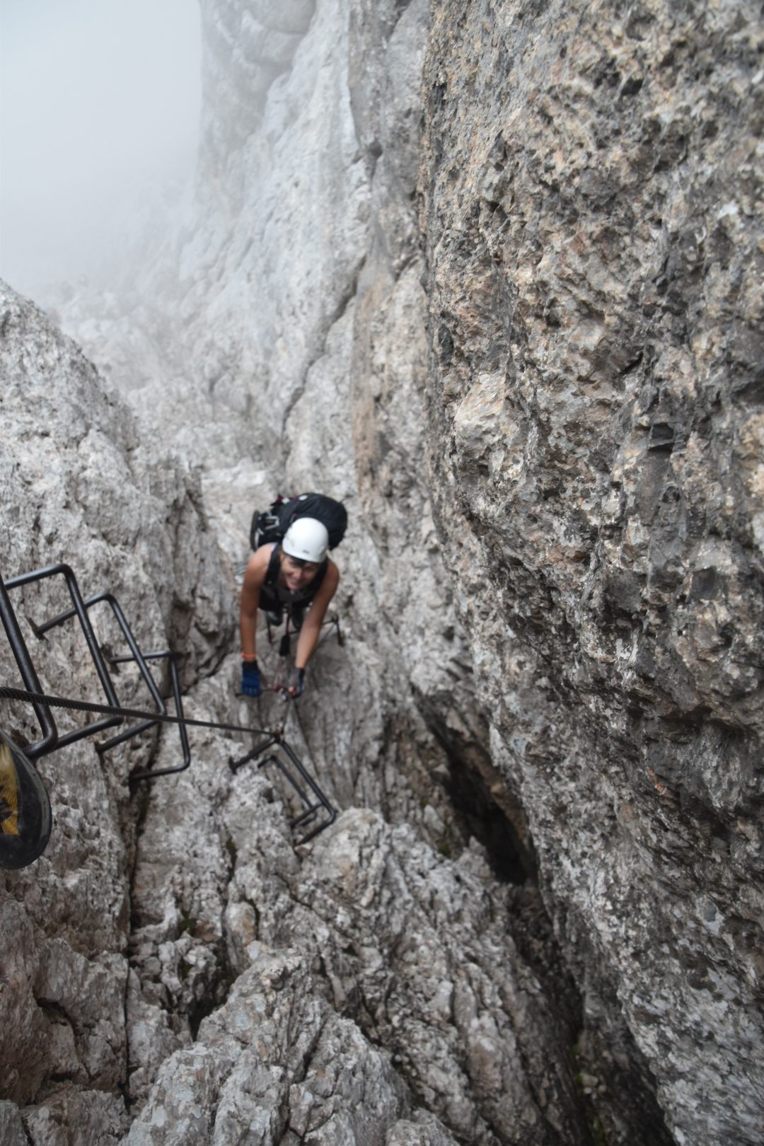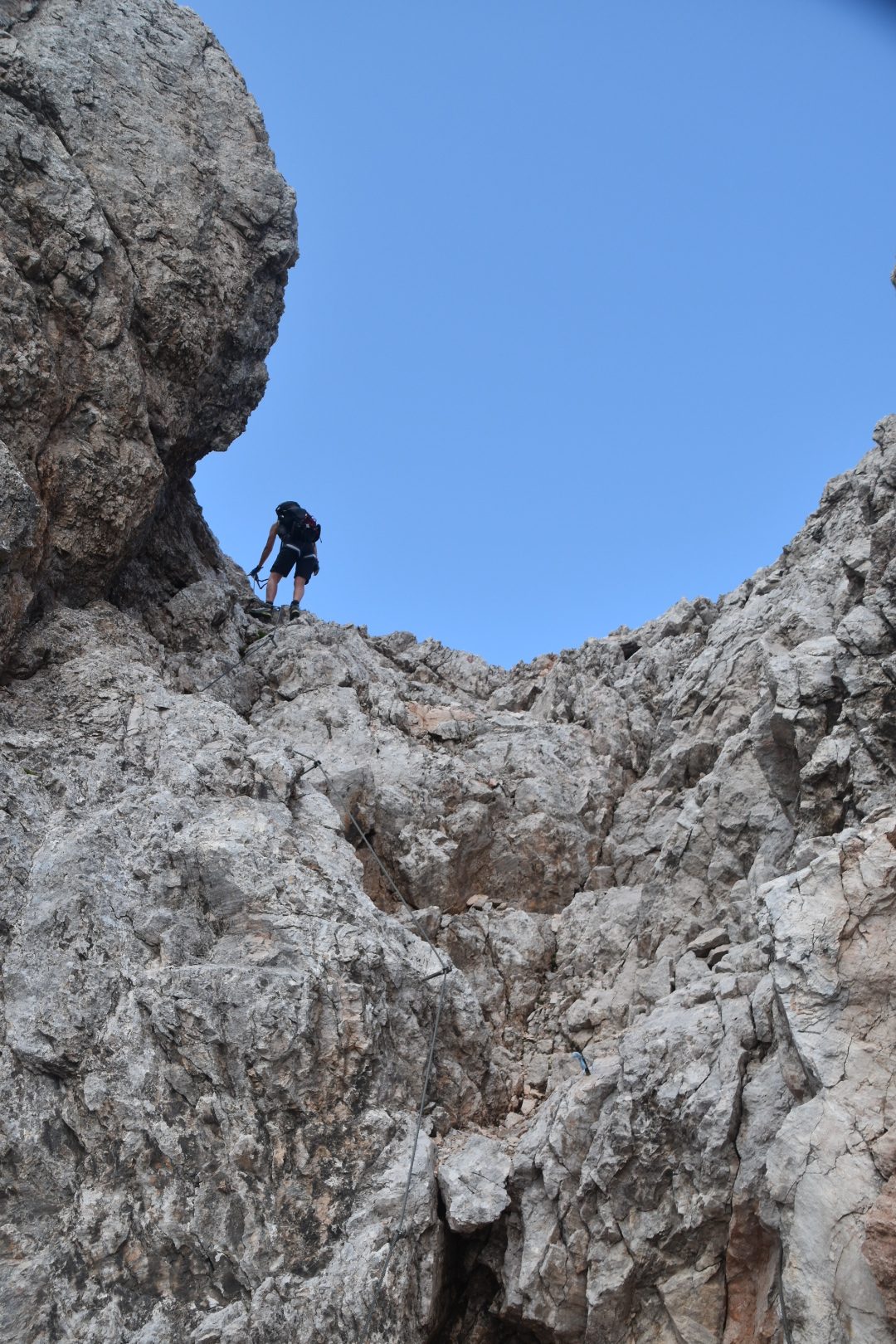 Climbing through the gap on via ferrata Alleghesi