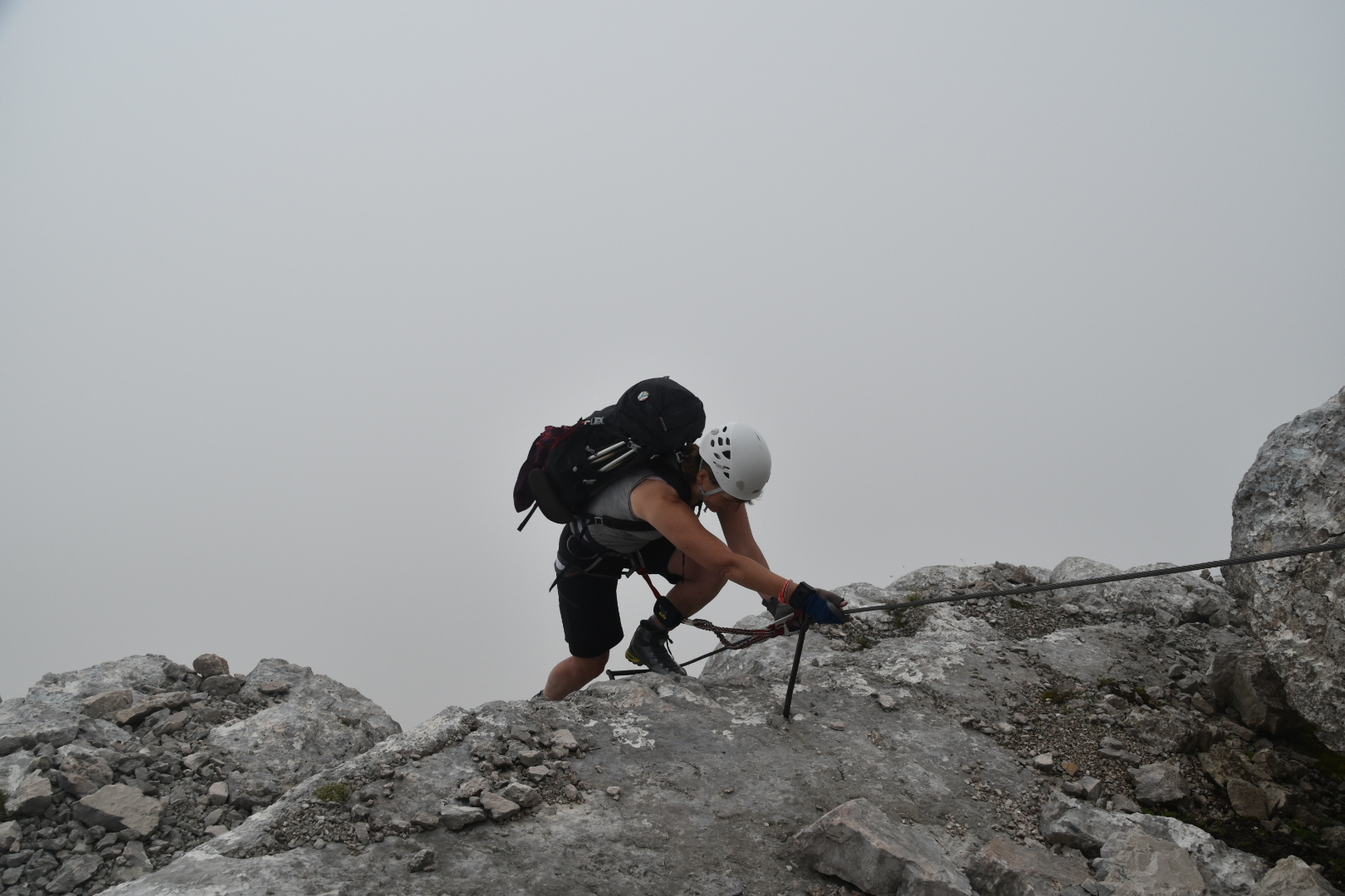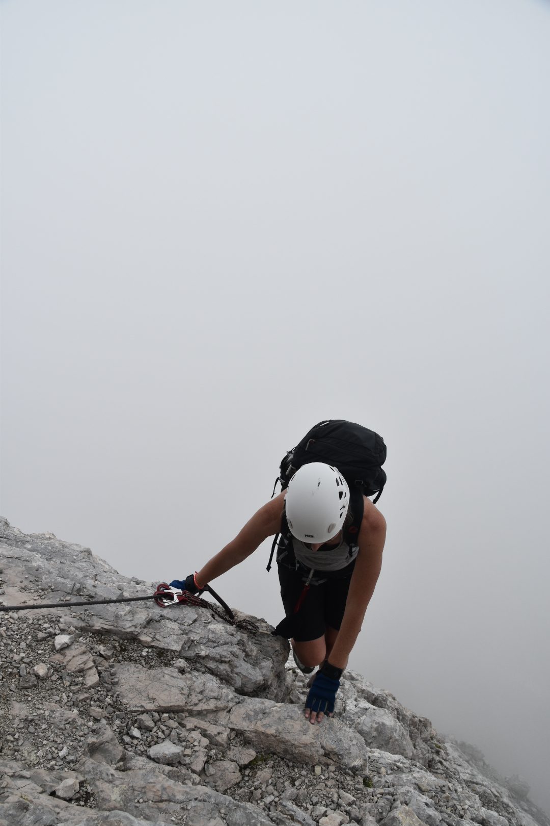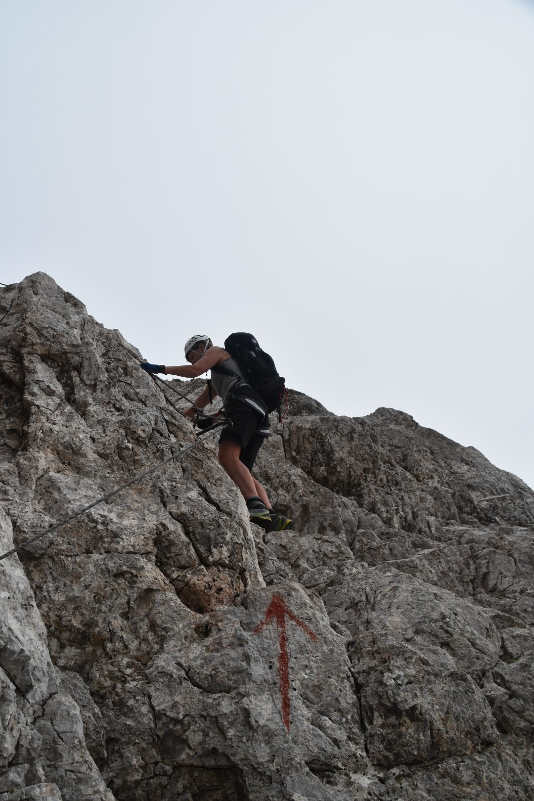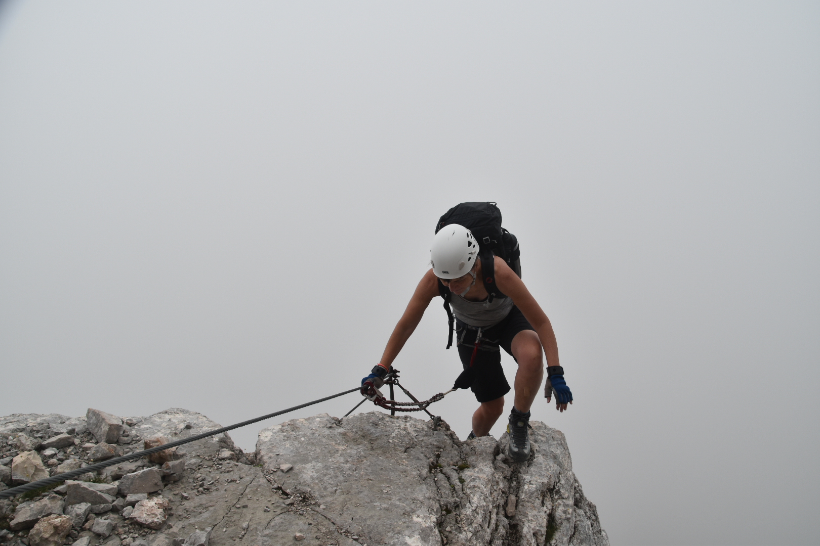 Climbing through the gap on via ferrata Alleghesi